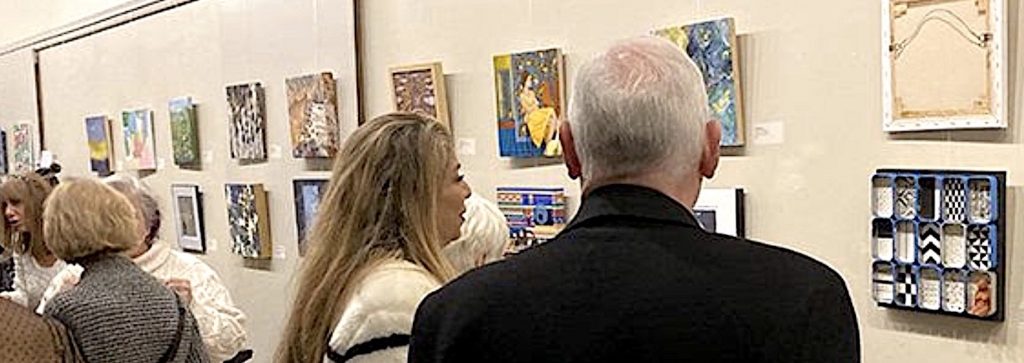 Visitors to an earlier “Small Works” holiday show, sponsored by the Artists Collective of Westport, inspect some of the 12-by-12-inch artwork on display. / Contributed photo