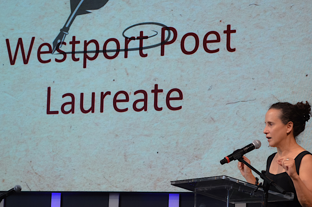 A ceremony at The Westport Library Wednesday afternoon concluded the three-year work of Westport’s first poet laureate — Diane Lowman — and welcomed her successor — Jessica Noyes McEntee.