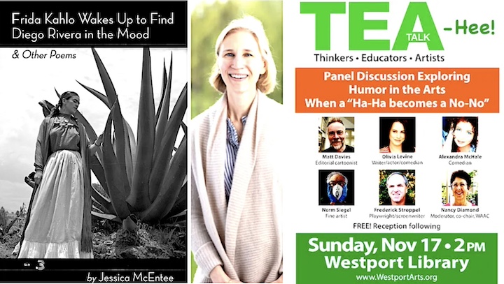 Thursday, Nov. 14, 7 p.m.: Jessica Noyes McEntee, a former Westport poet laureate, will discuss her new poetry chapbook, “Freda Kahlo Awakes to Find Diego Rivera in the Mood & Other Poems.” She will be joined by Nancy Diamond, the WAAC co-chair. To register to attend, click here.