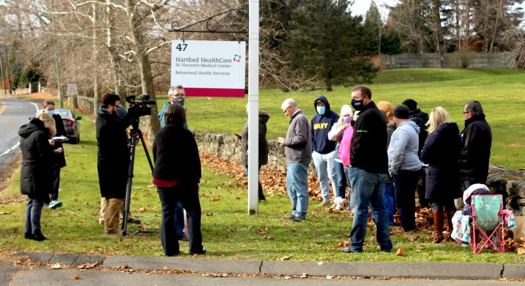 “Hartford Health, be fair to those that care,” said Susan Barna, a worker at the Westport facility formerly known as Hall-Brooke Hospital and now owned by Hartford HealthCare, which owns St. Vincent’s here and the affiliated hospital in Bridgeport.