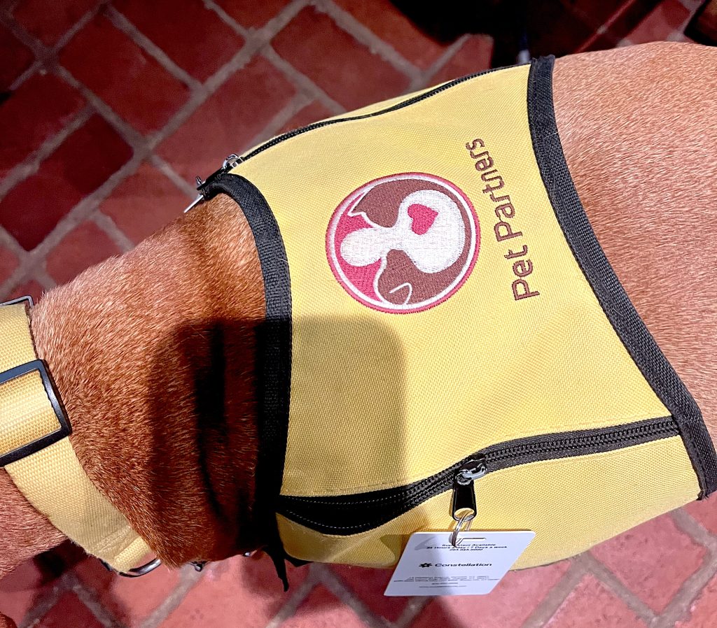 Before the COVID-19 pandemic, Koizim worked with Penny as a therapy dog at Norwalk Hospital and two nursing homes, but the sudden halt to in-person services disrupted that work. Koizim resumed therapy work with Penny in 2022.