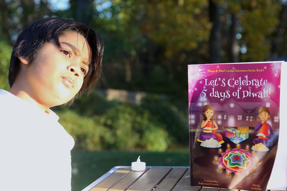 Ram Gupta, 10, of Westport, who was born on the central day of Diwali, takes part in the celebration. (Photo by Jarret Liotta)