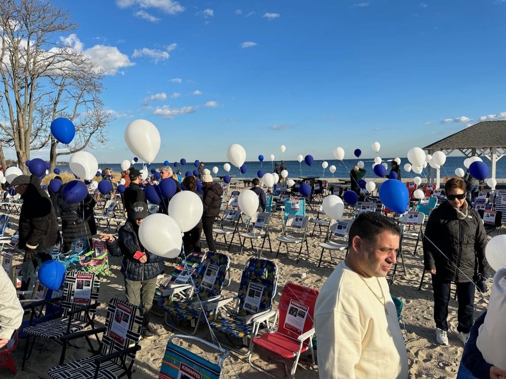 WESTPORT — Empty beach chairs were placed on the sand at Compo Beach on Sunday to draw attention to the 240 people held hostage after Hamas’ attack on Israel.