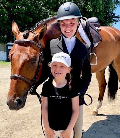 Left: Katherine Meyer, 16, with friend and fellow equestrian, Angie Lawlor, 6, a student at Greens Farms Academy in Westport. / Photos by Gary Webster