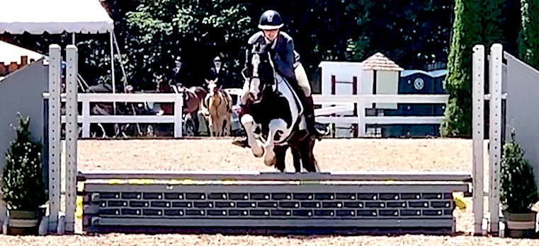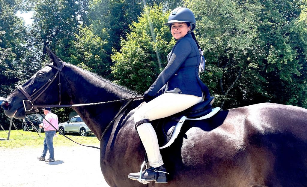 Stella Chivee, 12, of Harrison, N.Y., astride her horse. She had the best ride yet at the horse show, her trainer Kristen Carillo said as Stella left the ring, all smiles. / Photo by Gary Webster