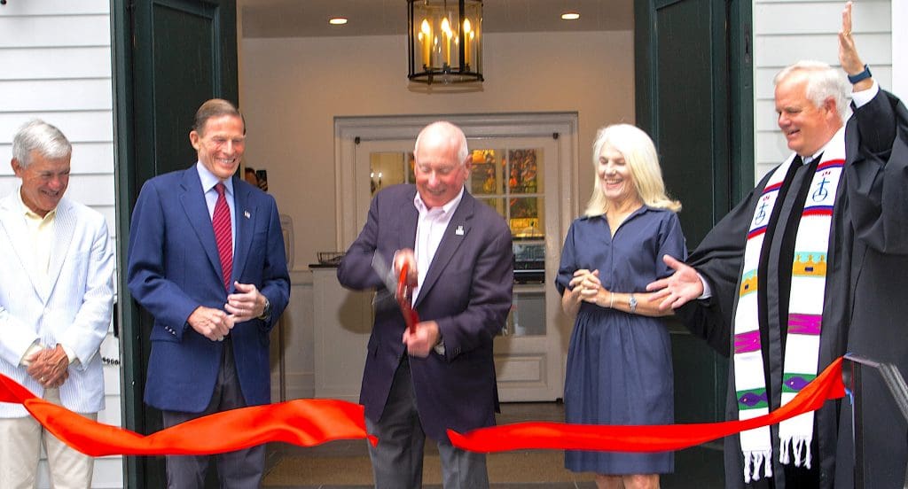 Among those on hand for a ribbon-cutting ceremony were U.S. Sen. Richard Blumenthal, former First Selectman Jim Marpe and the Rev. Jeff Rider, the church’s senior minister.