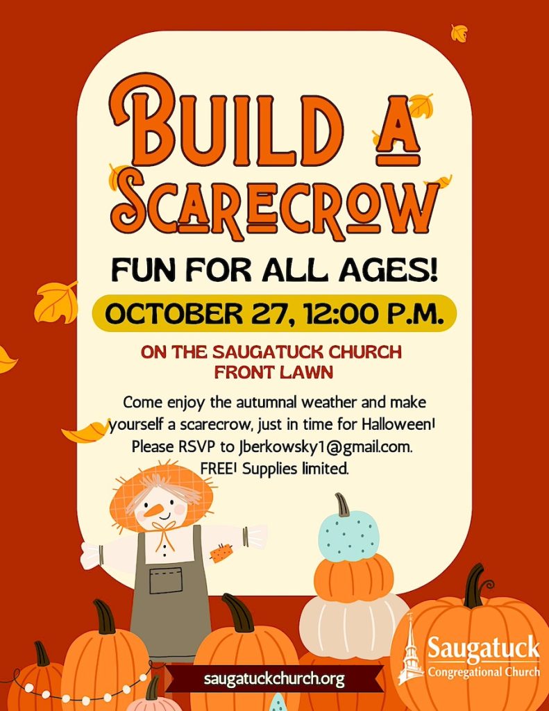 WESTPORT — Scare up autumnal fun and build your own scarecrow with harvest-time ingredients Saturday at Saugatuck Congregational Church.