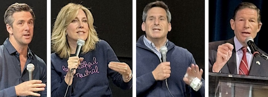 “It’s hard to get a clear view of where the U.S. stands” after the election of Donald Trump to his second presidential term, said moderator John Brandt of the Y’s Men, introducing the panel’s journalists: John Berman, Alisyn Camerota and Dave Briggs all currently or formerly of CNN, and Dan Woog of the Westport blog 06880.