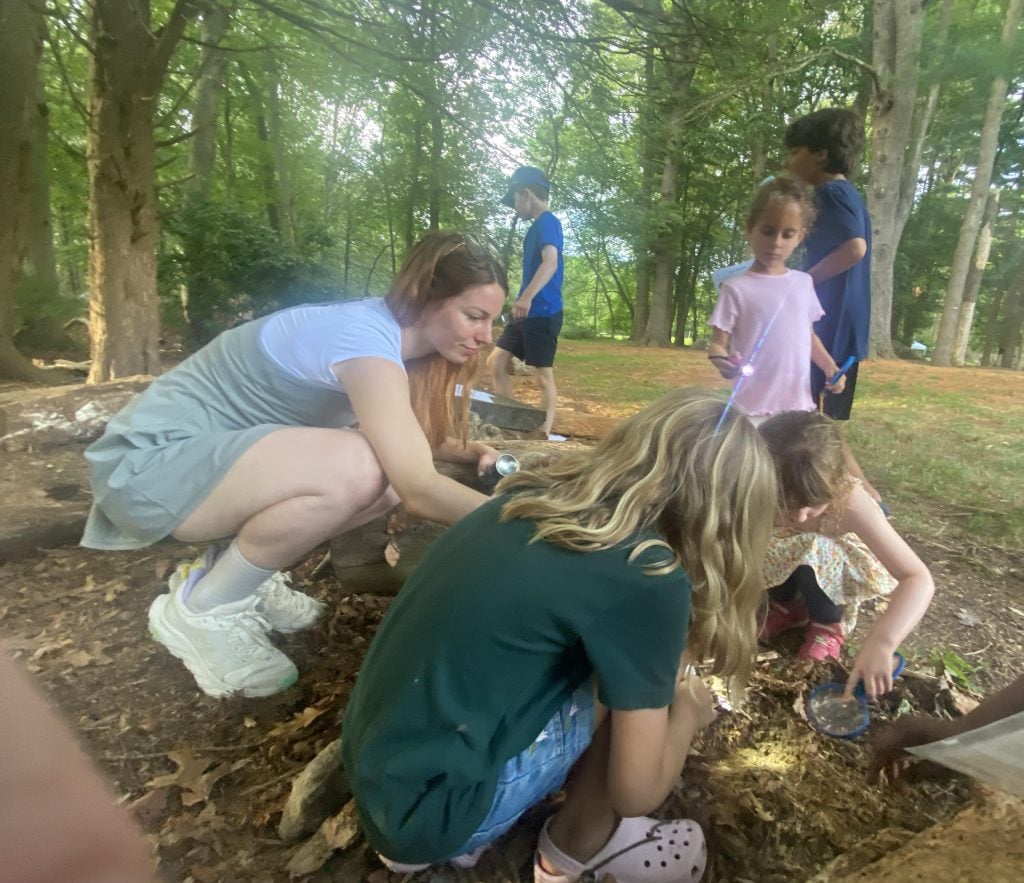 Of course, this was all set up by the organizers of Earthplace’s Kids’ Night Out, a Friday evening activity for kids aged 4 to 13 that the nature-focused science education center began this year. For the evening’s activity, Nature Detectives, participants probed the outdoor “crime scene” prepped by naturalist Natalie Younger. Previous outings were: Frogs, Toads and Tadpoles, Oh My! in March; and Pollinator Party in May. The next two are scheduled for Sept. 19 and Oct. 17.