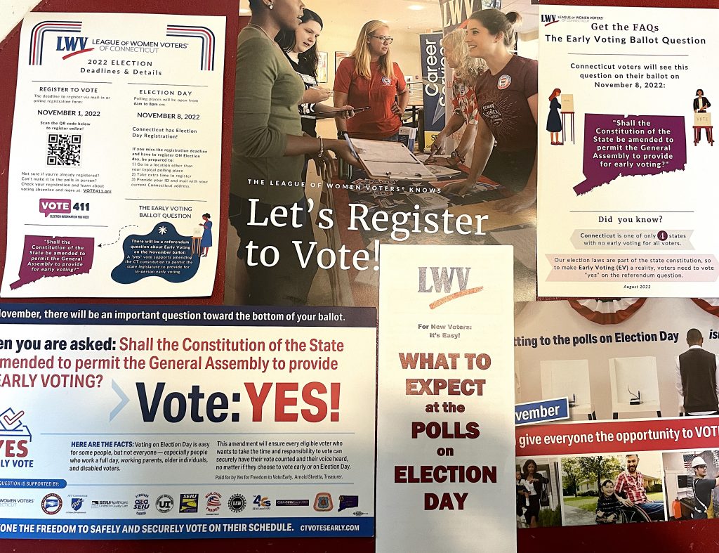 Also this year, the Westport league is part of a statewide initiative encouraging voters to approve a ballot question to allow early voting in Connecticut. This state is one of only four that does not permit voting before Election Day, according to the LWV of Connecticut, while some states allow ballots to be cast as much as 30 days before an election.