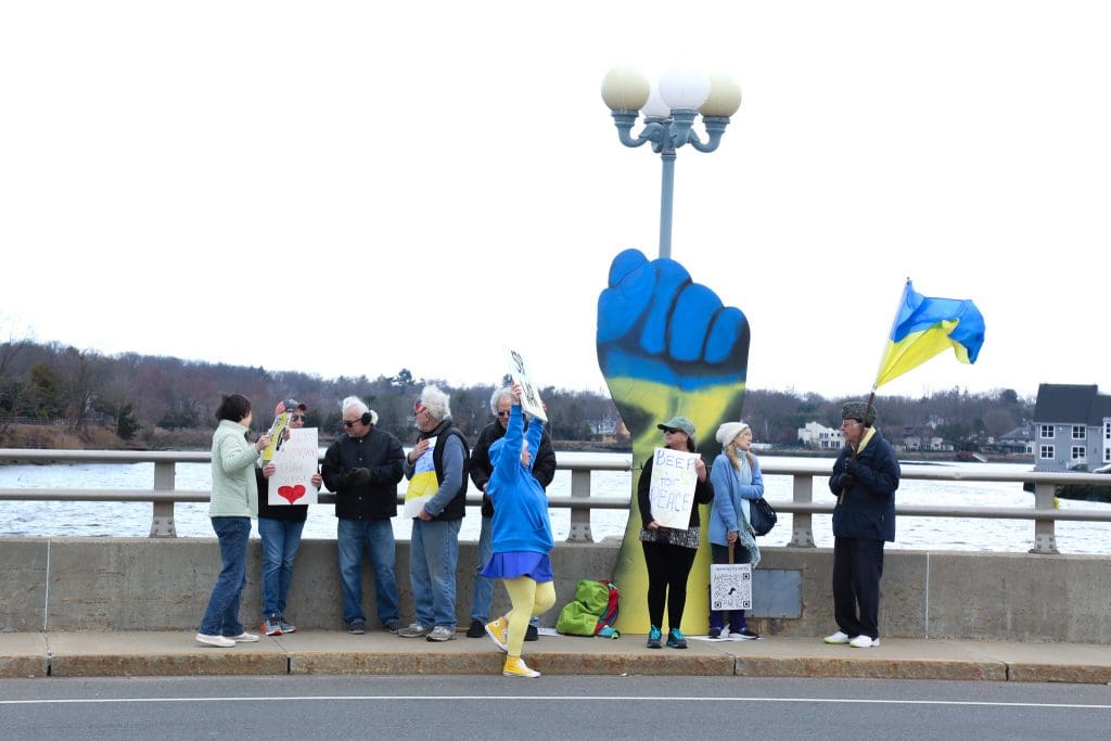 Both men have participated in local protests and rallies supporting Ukraine, including one held at Jesup Green on March 5, and another on the Ruth Steinkraus Bridge on March 26.