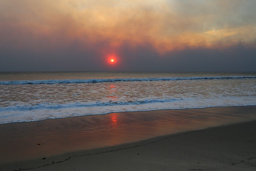 But camera in hand, I descended the Montana steps on the western cliff above the Pacific Coast Highway and walked out to the beach. The setting sun before me was a remarkable magenta color as the towering wall of smoke from the fires fell west. Winds were terrifically strong. As I marched along the wide beach into the Palisades, great blasts of sand and smoke pelted me like hail.