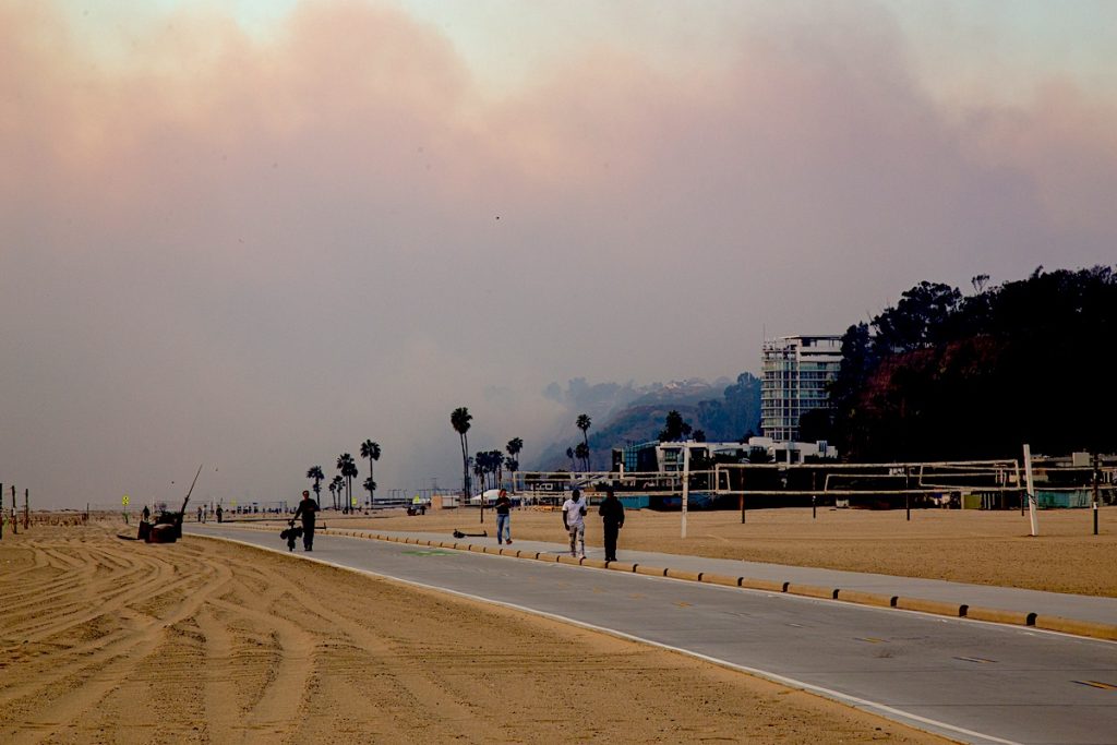 For my part, after covering a story last week at the Westwood evacuation center, I traveled to the beach so I could get a look at the fire-burned hills up the coast in the adjacent Palisades. It was a memorable walk, taking place as police cars drove down Montana Avenue in Santa Monica, which had just become the southern boundary for required evacuation, announcing through loudspeakers, “This is a mandatory evacuation! You must leave the area at once!”