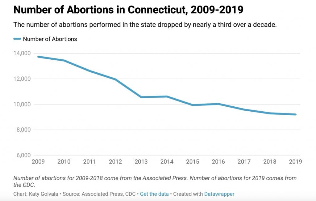 The number of abortions performed in Connecticut dropped by nearly a third in the decade between 2009 and 2019, which mirrors declines seen across the country.
