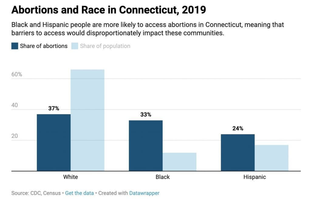 In 2019, Black and Hispanic people accounted for 57 percent of abortions in Connecticut but only accounted for 19 percent of the overall population.
