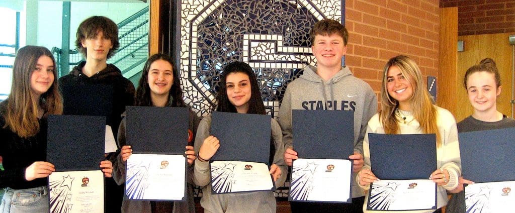 Students, nominated by their teachers, are recognized for helping “make Staples High School a welcoming place for their peers and teachers alike,” according to the school’s announcement.