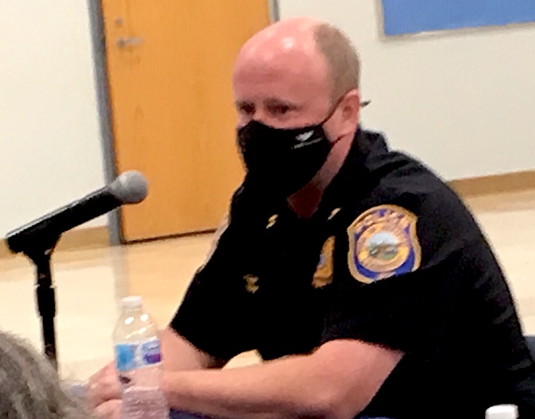 Board Chair Candice Savin wondered if there isn’t a middle ground on the issue. She said she is grateful for police officials’ desire to protect the school district. However, she said she was taken aback to learn three years ago that a police officer had once been assigned to the town’s two middle schools.
