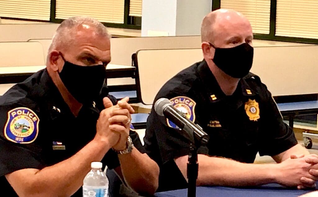 Nearly a month after board members drew the line at assigning an officer inside the town’s elementary and middle schools, Scarice broached the sensitive topic a second time, saying he would get board buy-in before making any change to existing regulations.