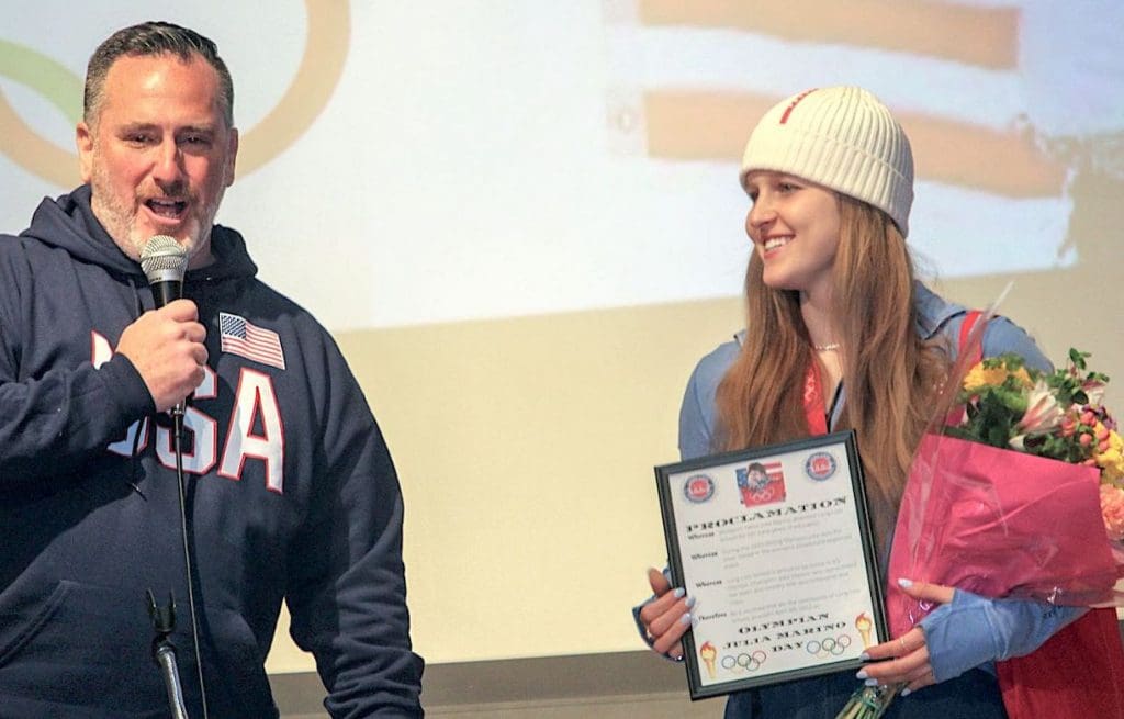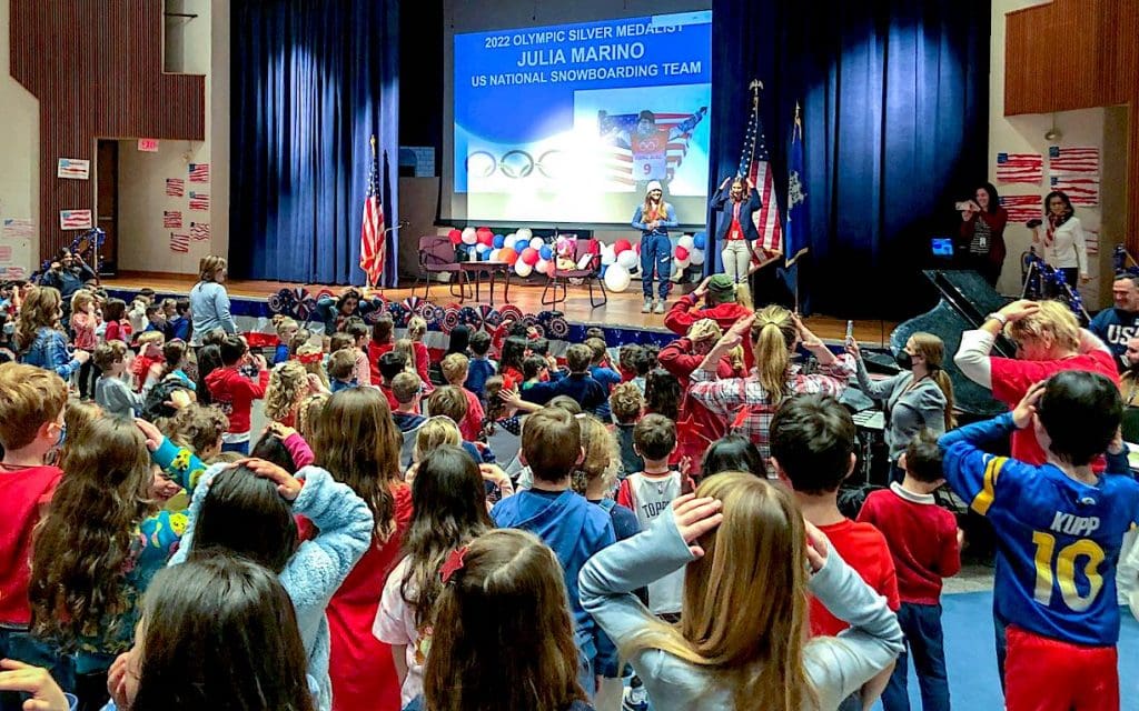 WESTPORT — Olympic silver medalist Julia Marino made a triumphant return to her elementary school Monday morning to share her experiences and answer questions