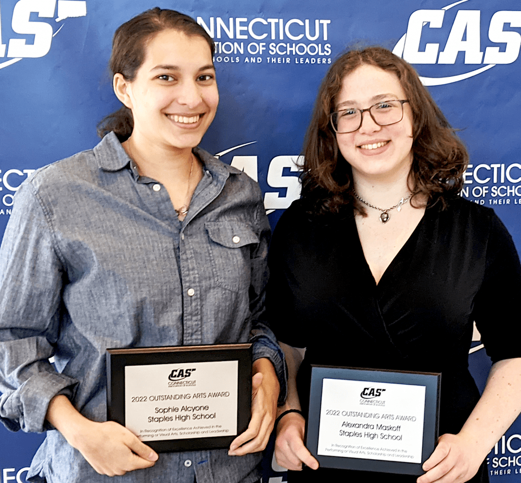 Sophie Alcyone and Alexandra Maskoff were among approximately 300 seniors from across the state honored at the recent 27th annual High School Arts Awards, sponsored by the Connecticut Association of Schools.
