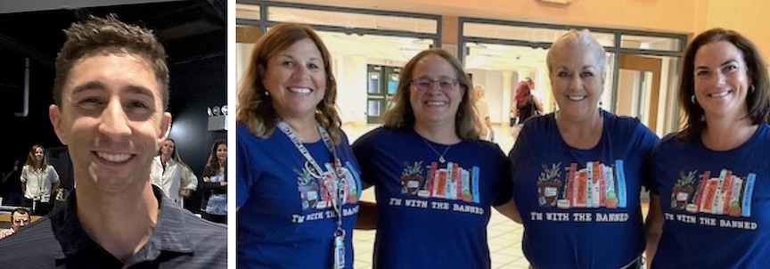 The Staples High library staff were easy to pick out in the crowd. They wore matching T-shirts proclaiming they were “I’m with the Banned,” a clear reference to last year’s attempt by some members of the public to strip the library of books they considered controversial. The effort failed.