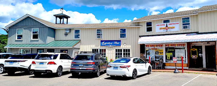The yellow-and-green color scheme replacing the darker barn boards on the buildings, an entry with a classical Greek look and the proposed signs all raised concerns among board members.