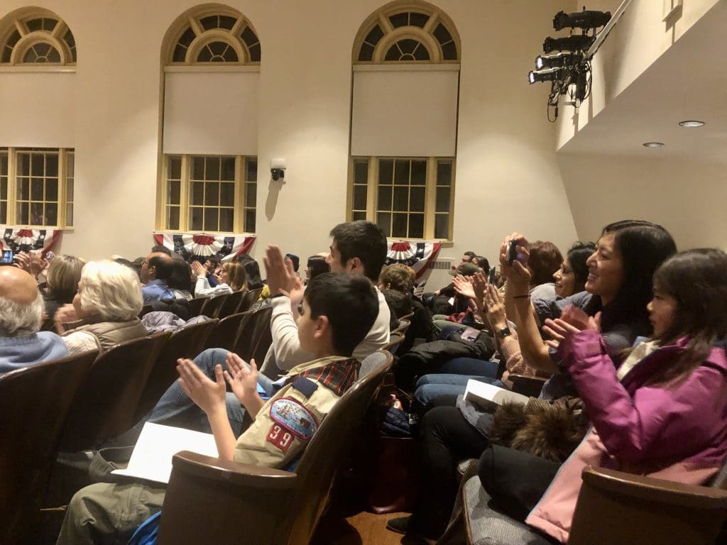 The large space was filled with those who won election or re-election Nov. 7 to several town boards and commissions, as well as proud relatives, friends and community members, including a row of Webelos scouts.