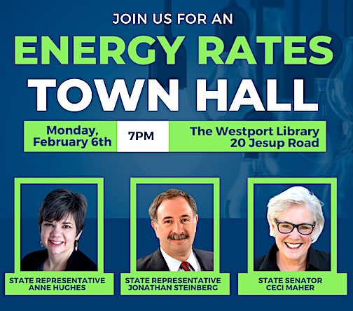 WESTPORT — Local state legislators will host a public forum on state energy rates, which have soared over the last year, on Feb. 6 at the Westport Library.