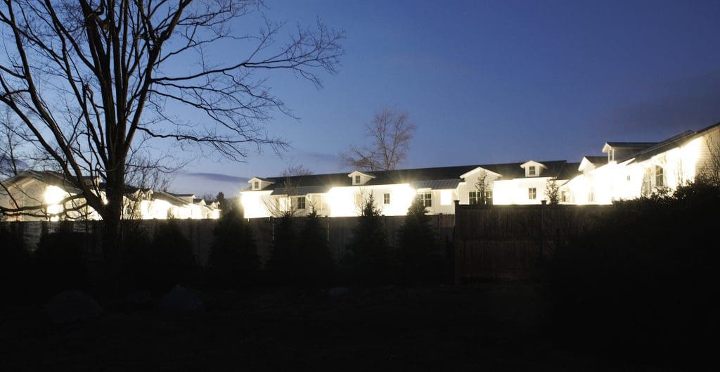 The back of a Cottage Lane home, bathed in light from the neighboring apartments at 1480 Post Road East. / Contributed photo.