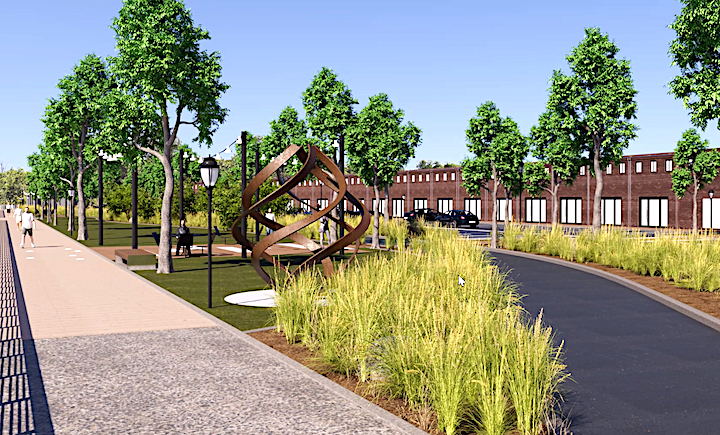 Additional areas with trees and other plantings will also separate rows of parking from one another, shield trash compactors from view and beautify the river walk.