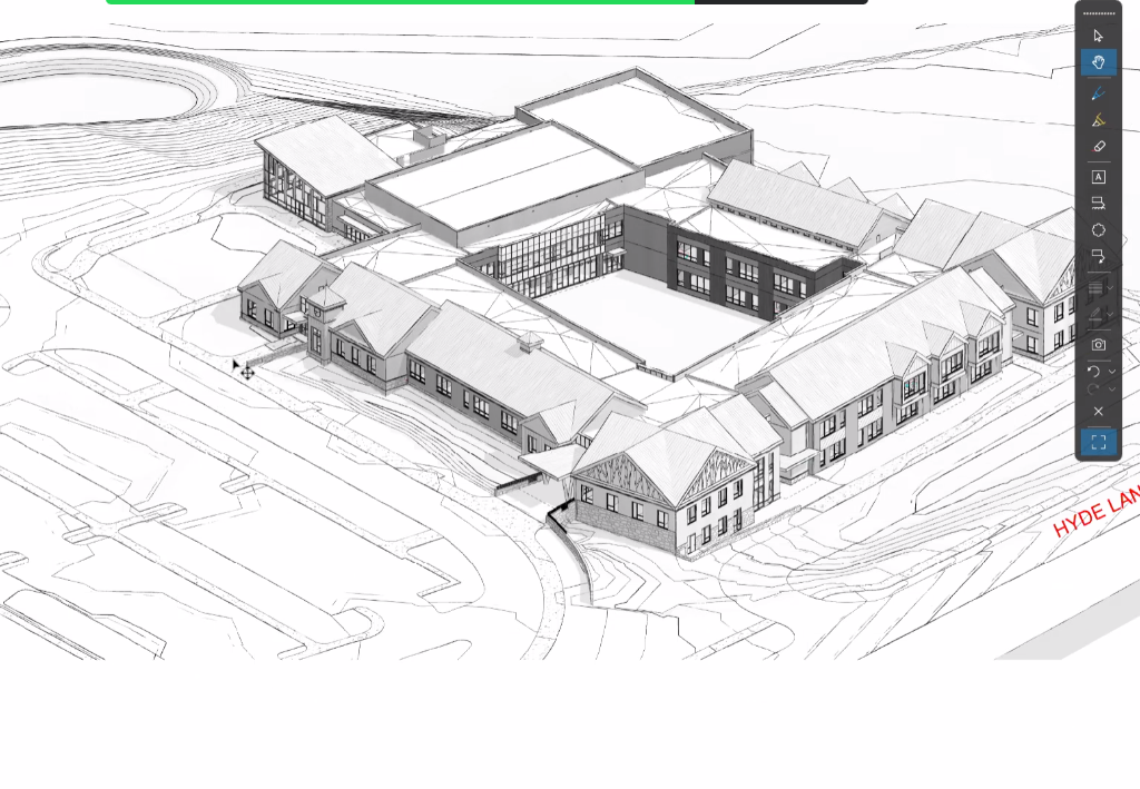 “We wanted to look at this from the perspective of keeping buses and cars off of Hyde Lane,” he said, adding that the 250 number doesn’t take into consideration the potential for population growth in the school as new citizens move into town. “We didn’t want to push it, but we could have gone for more parking.”