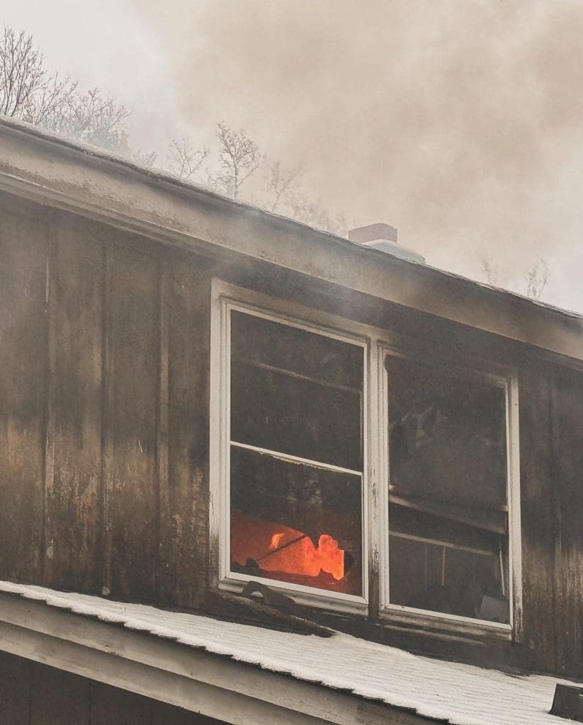 While all residents had left the dwelling, firefighters rescued a pet still inside the structure. Another pet left behind died.