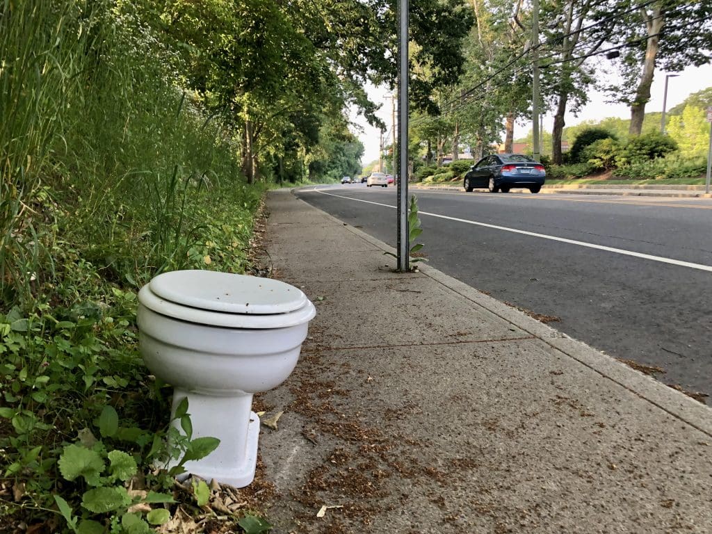 Westport police said Sunday evening they didn’t believe the toilet had been reported yet. Asked if the town’s Public Works Department would have to haul it away, they said the state would have to do that because Riverside Avenue is a state road (Route 33).