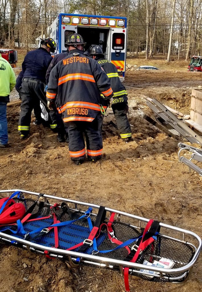 WESTPORT — Firefighters made a “below-grade rescue” after being dispatched on a medical-emergency call at a Crestwood Road construction site Saturday morning.