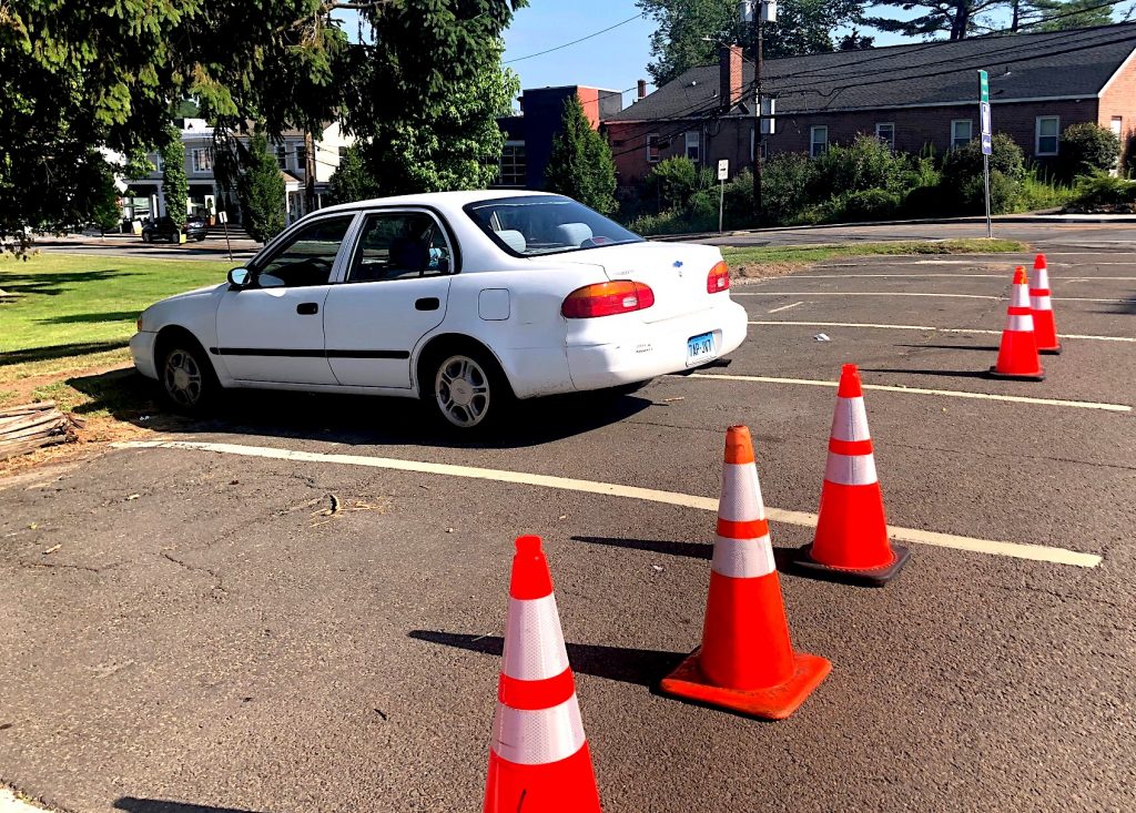 There was no tape cordoning off a crime scene on the green Monday morning, but the small white Chevrolet where the woman’s body was found was surrounded by bright orange traffic cones.