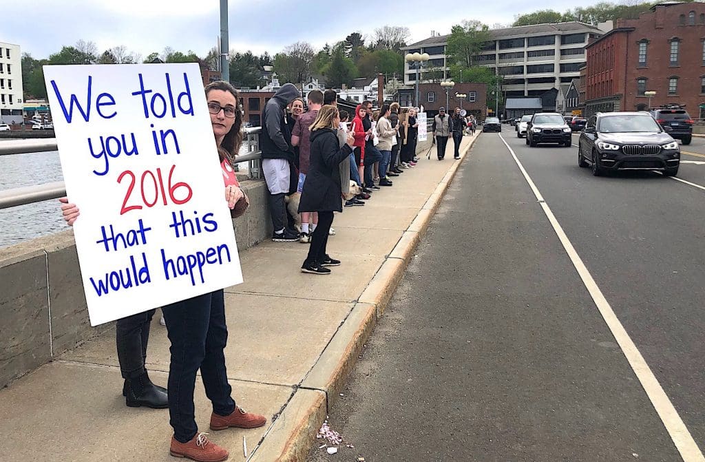 Lamont was on hand for Sunday’s event, calling the downtown bridge, which he’d visited several times previously for rallies on other issues, “the conscience of Connecticut.”