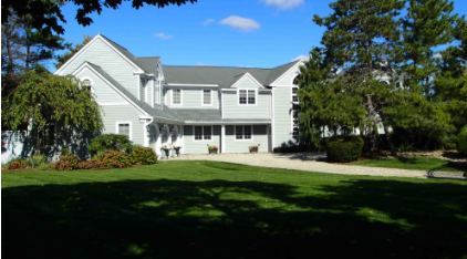The 2-story custom colonial, built in 1968, has 7,000-square-feet of living space, five bedrooms, five baths, a concrete pier, a wooden dock, a basement, a garage, a stone terrace, an open porch, an enclosed porch and a finished upper story.
