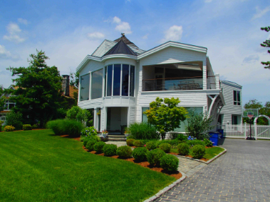 The three-story custom contemporary was built in 1972. It has 6,400-square-feet of living space, five bedrooms, five bathrooms, a basement area, a garage, an open porch, a stone terrace, a finished upper story, an in-ground pool, a wood dock and a pier.