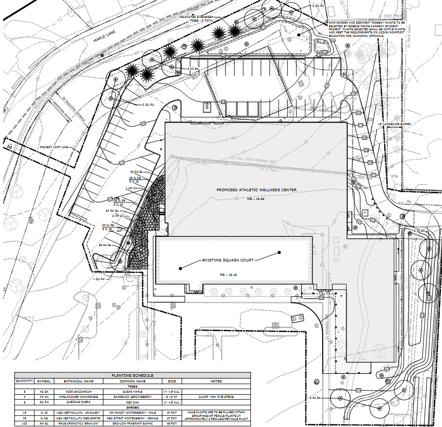 The facility would have a 29,230-square-foot footprint, and increase the number of parking spaces “while maintaining the robust vegetative buffer along Maple Lane.”