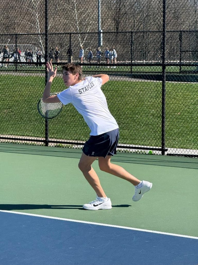 In the win over Stamford, Staples got a win at fourth singles by Jack McAuley 6-0, 6-3, and a trio of wins in doubles play. At first doubles, Sebastian Elizondo and Tyler Gorin won 6-0, 6-0. At No. 2 Jonny Greenspan and Andrew Ridloff also won 6-0, 6-0. At No. 3 Aaron Fortunoff and Nick Trinchi came out on top 6-1, 6-1.